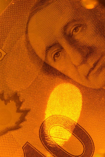 Those unique design of textured-felt surface, ultrafine printing, intaglio printing, or even tactile features for the visually-impaired is meant to make banknotes hard to counterfeit, however, the intricate patterns also become an obstacle to identifying latent fingerprints found in a crime scene.