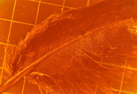 But, its intricate microstructures, the branches of barbs then the barbules interlocked with one another by small hooks, and its semi-porous nature, it is not easy to develop latent fingerprints on them, let alone the feathers come in a huge variety of forms and patterns that would disturb the ridge details.