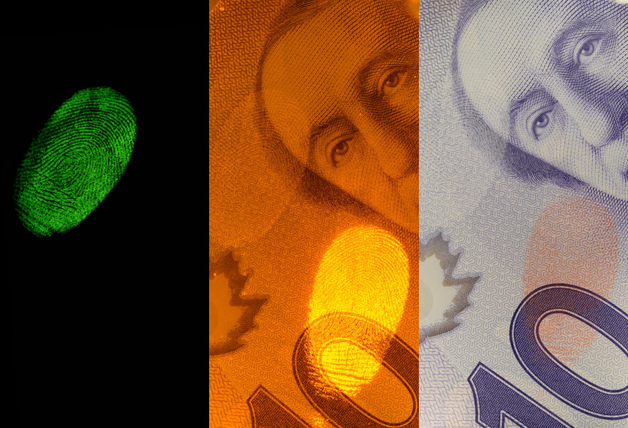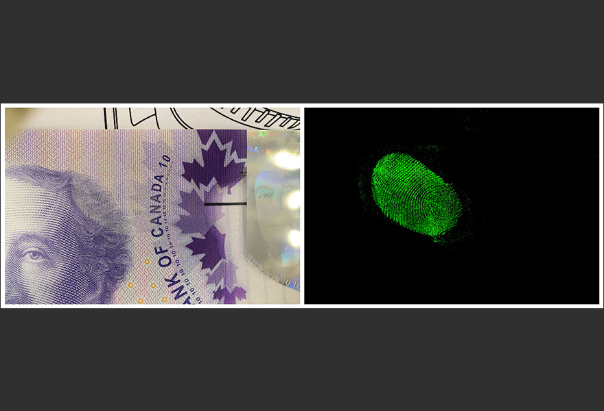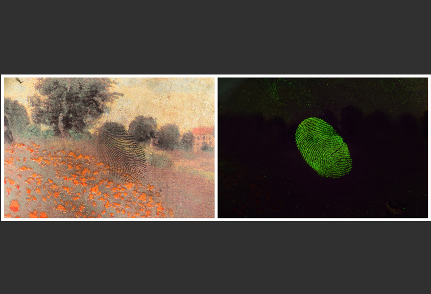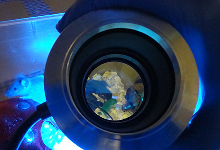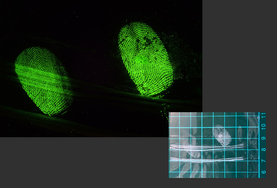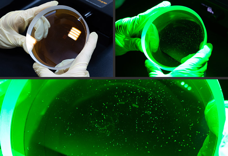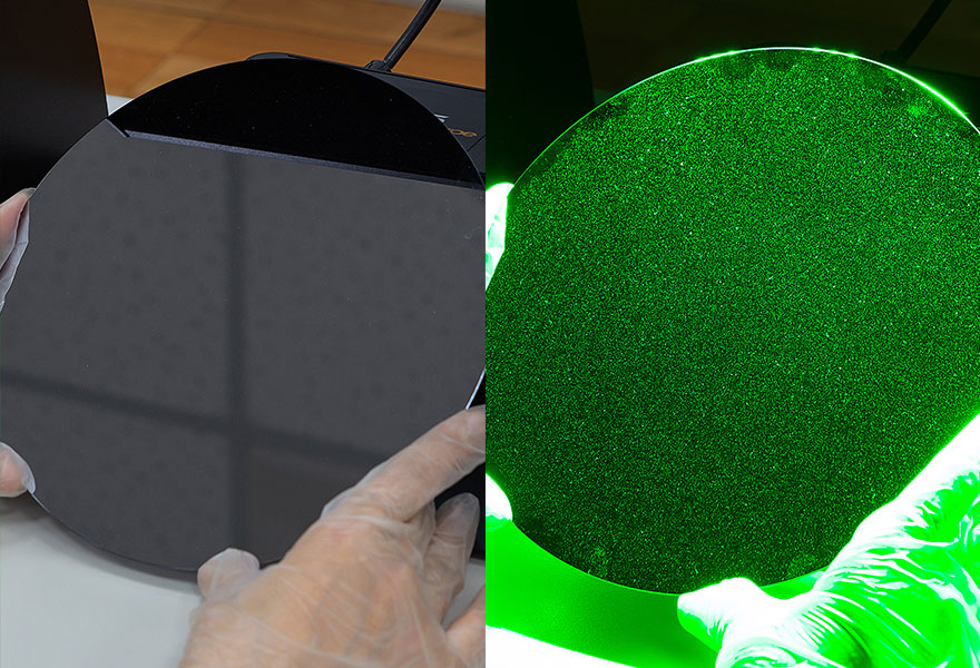 Searching for Wafer alien particles / scratch inspection Comparison : (Left) Under ambient light ; (Right) Under collimated green light