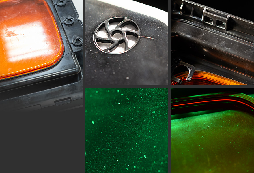 Inspectors could find sticky dust particles on Optical Lens efficiently. Comparison: (Upper left) lens under ambient light ; (Upper right) lens under 4000K white light unqualified.