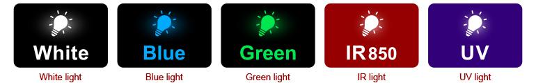 White light / Blue light / Green light / IR light / UV light (2 out of 5 , standard)